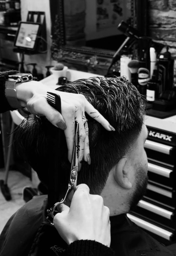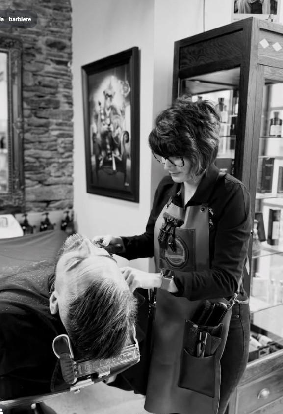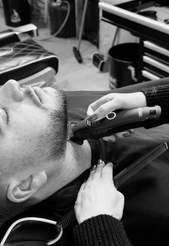 Présente depuis 2018 au Fauteuil du Barbier, ce qu’elle préfère par dessus tout, ce sont les réalisation des barbes mais surtout le rasage traditionnel au couteau. Un rituel à part entière, où chaque geste compte : préparation de la peau, précision du trait, finition impeccable. Finalement, on peut dire que c’est sa signature !